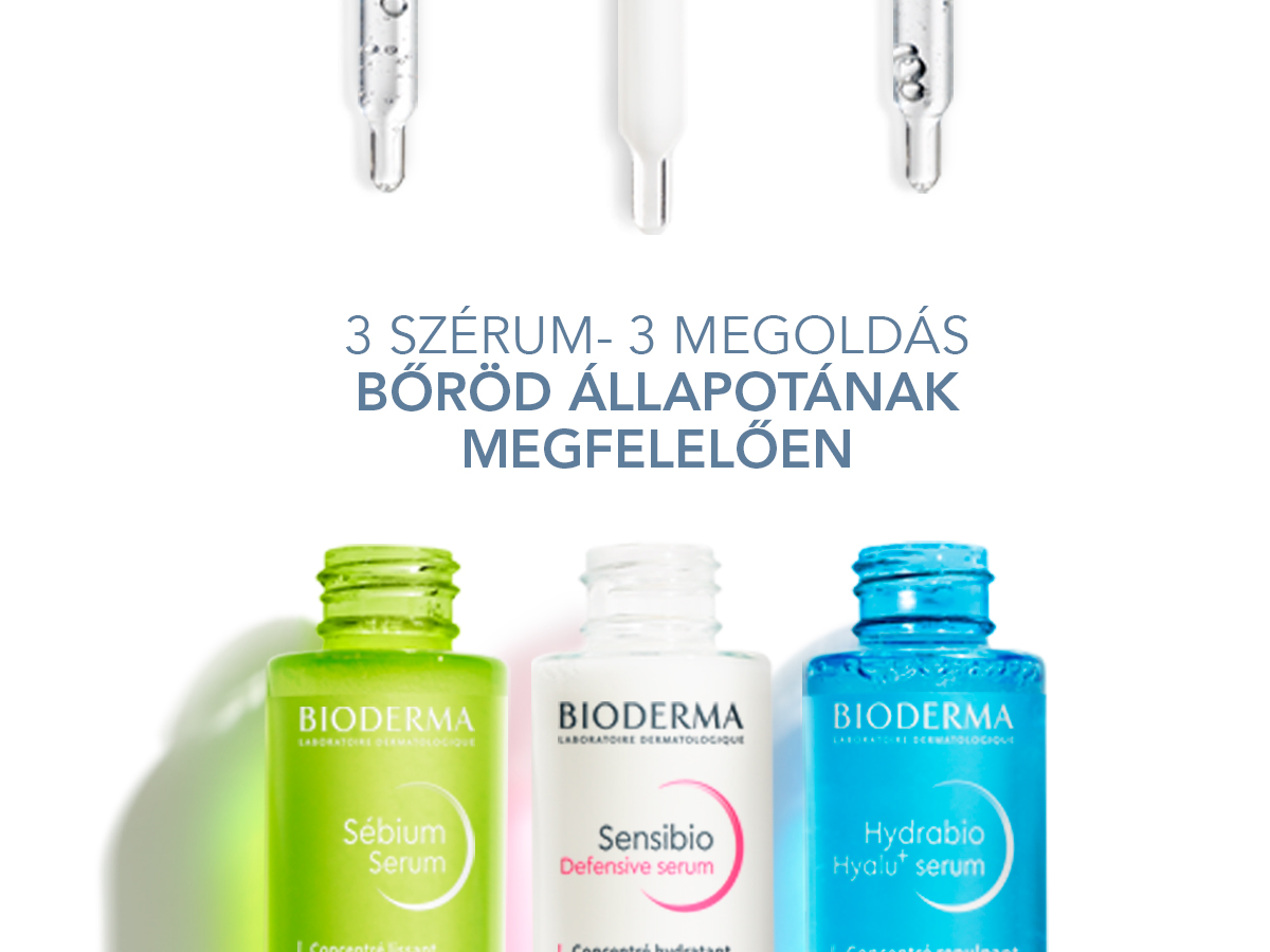 A Bioderma új szérumkollekciójában három specifikus problémára kínál megoldást: érzékeny bőr, pattanások és bőrhibák, valamint száraz, dehidratált bőr. Mindegyik termék hialuronsavval van gazdagítva, ami rendkívül hatékony az öregedés első jelei elleni küzdelemben is.