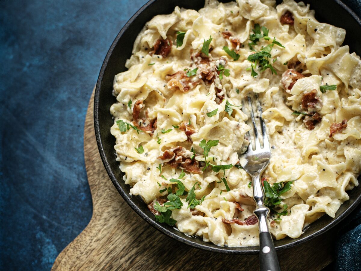 Krémes juhtúrós csusza pirított baconnel