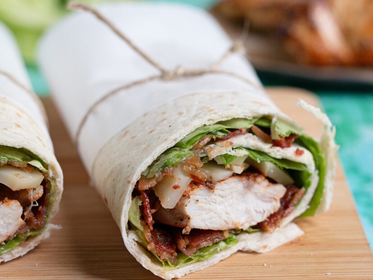 Csilis csirkés, sajtos tortillatekercs BBQ-szósszal