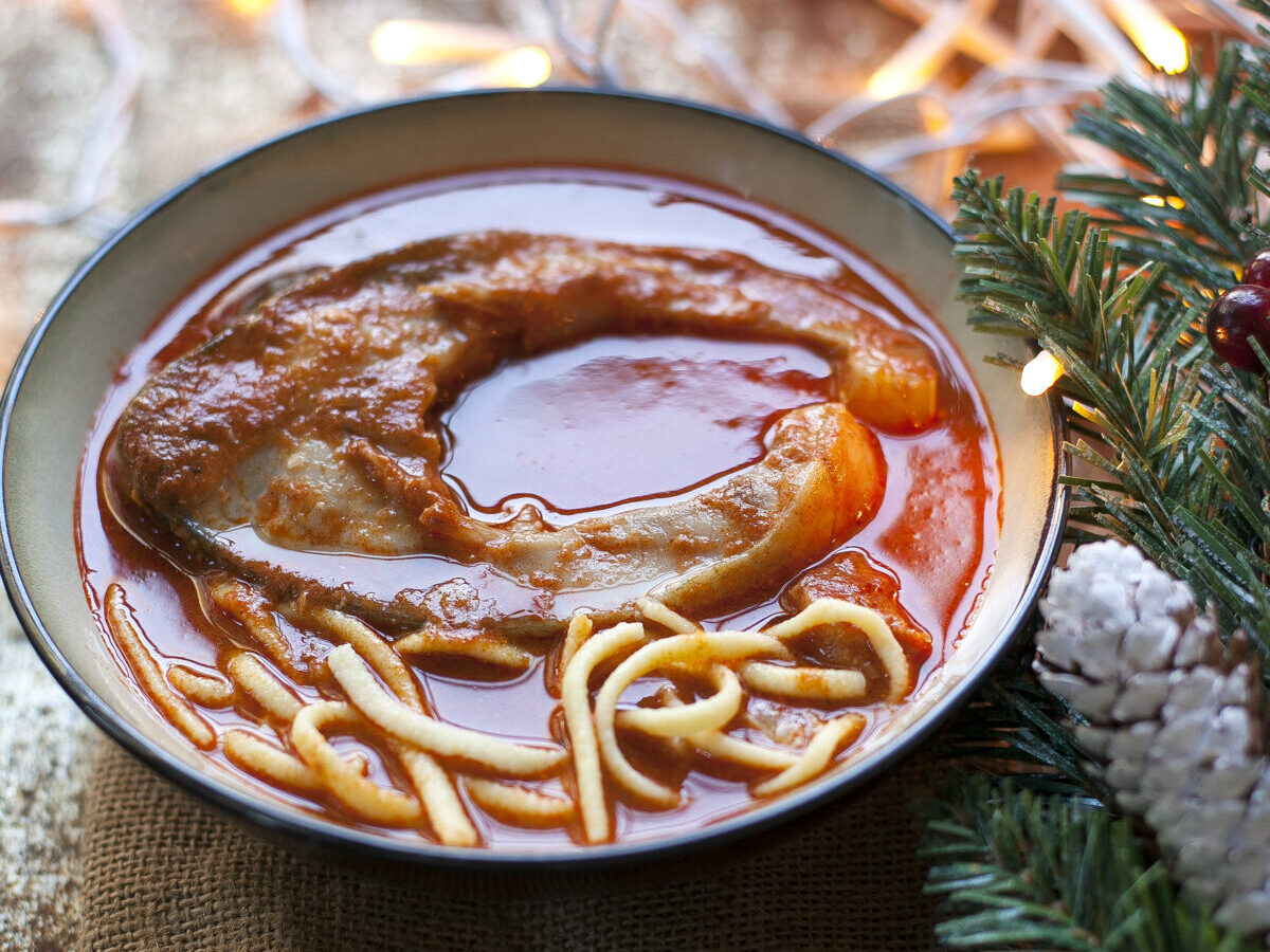 Halászlé pontyból, gyufatésztával
