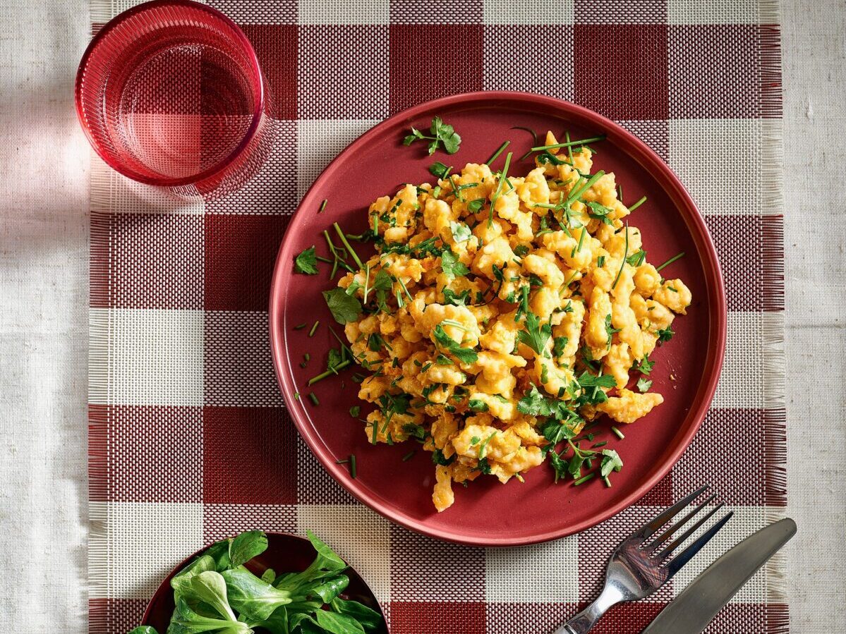 Zöldfűszeres tojásos nokedli madársalátával