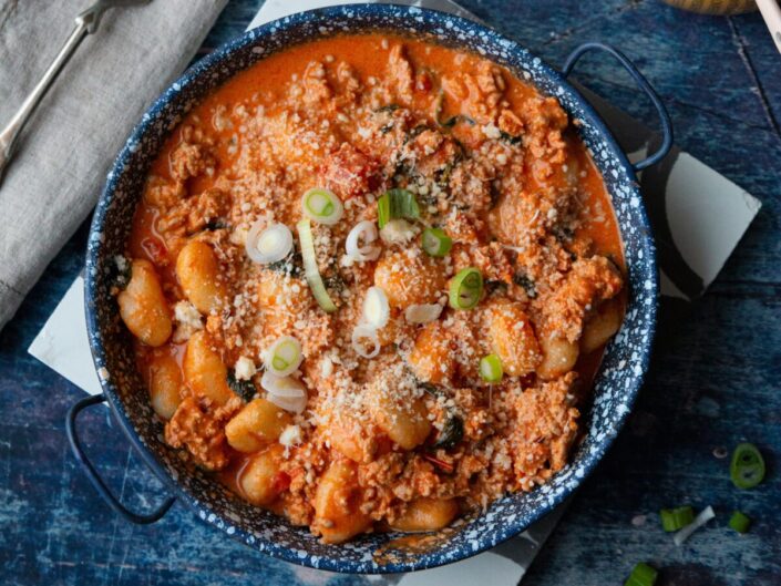 A krémes gnocchi paradicsomos, tejszínes húsraguval receptje