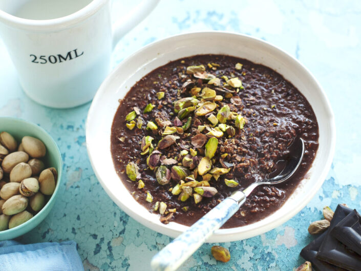 Ez a gyorsan elkészülő, krémes fogás a csokoládé rajongóinak készült, ahol a zabpehely adja a tartalmas alapot a nap indításához. Egyszerűen összefőzve, ropogós pisztáciával megszórva válik ez az étel egyszerre praktikus és különleges reggelivé.