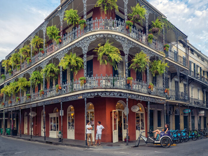 Az épületek csodásan tükrözik ezt a kulturális mixet. A híres French Quarter a legrégebbi városrész, egymáshoz simuló, 18. századi spanyol stílusú házakkal, színes homlokzatokkal, körbefutó kovácsoltvas erkélyekkel, zárt udvarokkal. A házak többsége műemléki védelem alatt áll, minden változtatáshoz a hatóság engedélyére van szükség.